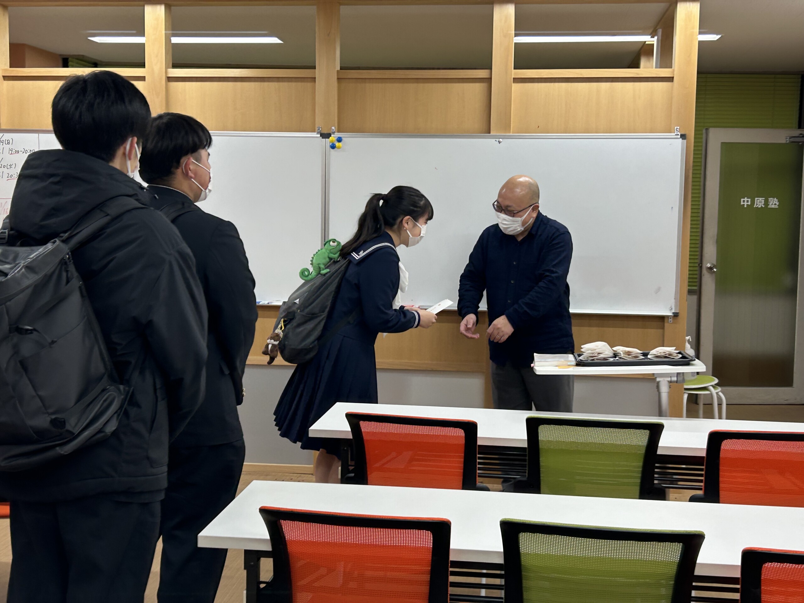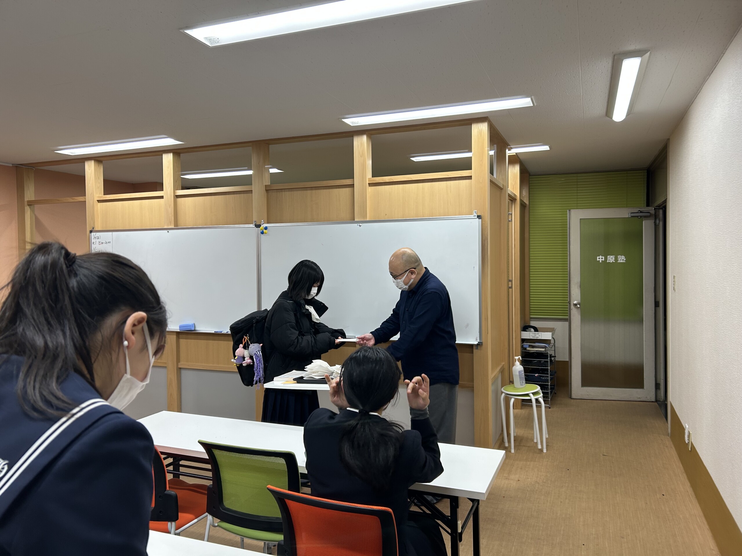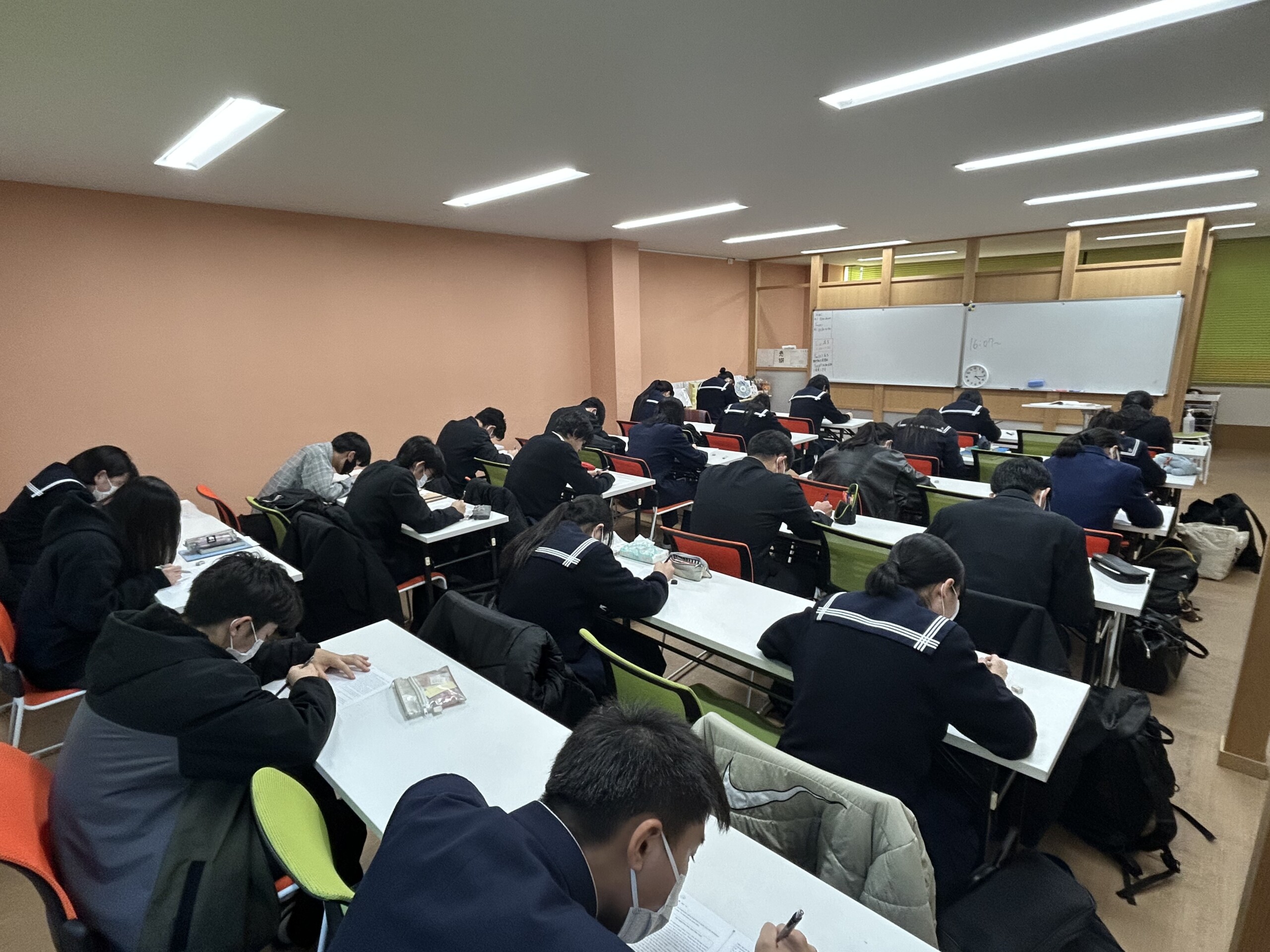 共通テストを明日にひかえて、最後の授業を行った。英語長文を解いて解法を確認し、伝統の「オレンジの紙」を渡して明日に備えた。