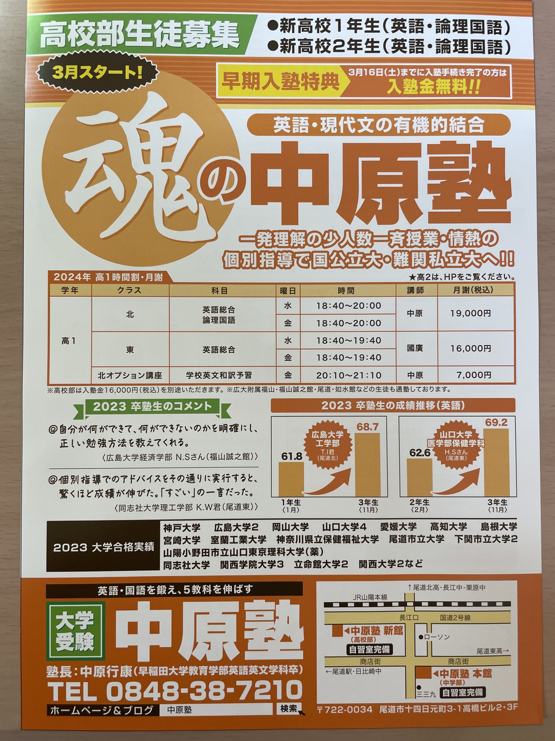 お知らせ TOP - お知らせ - 高校部の生徒募集を開始します。 2024/01/18(木) お知らせ 高校部の生徒募集を開始します。 高校部の生徒募集をはじめます。詳細は、お気軽にお電話かトップページの公式LINEからお問合せください。 なお、新高校3年生は満席、新高校2年生は若干名の募集となります。 よろしくお願いいたします。 戻る ←前の記事 2024/01/16(火) 高校部 2024共通テスト面談 次の記事→ 2024/01/18(木) お知らせ 中学部の生徒募集を開始します。